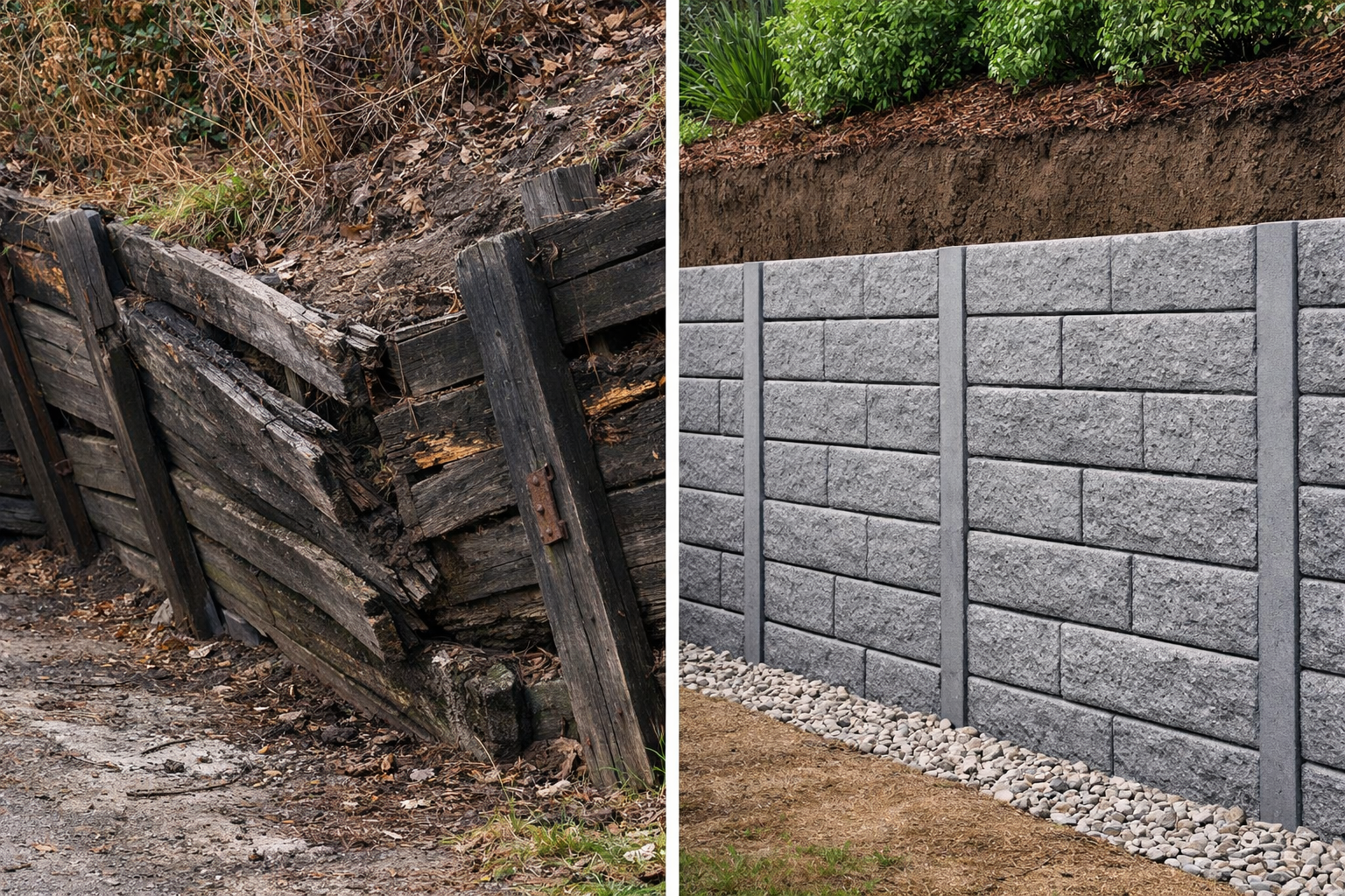 Concrete sleepers are the gold standard for soil retention. Unlike timber, which rots and fails over time, our concrete solutions provide: