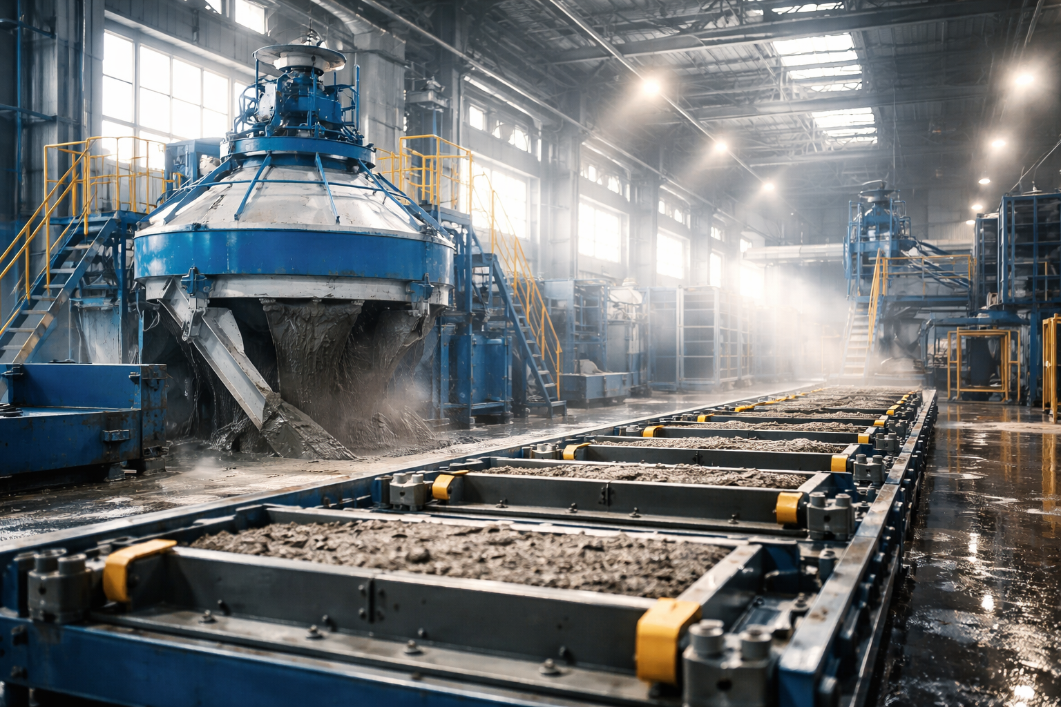 Mixing & Feeding: Twin Bin Aggregate hoppers, precise weigh-feed systems, and high-efficiency Planetary Mixers.